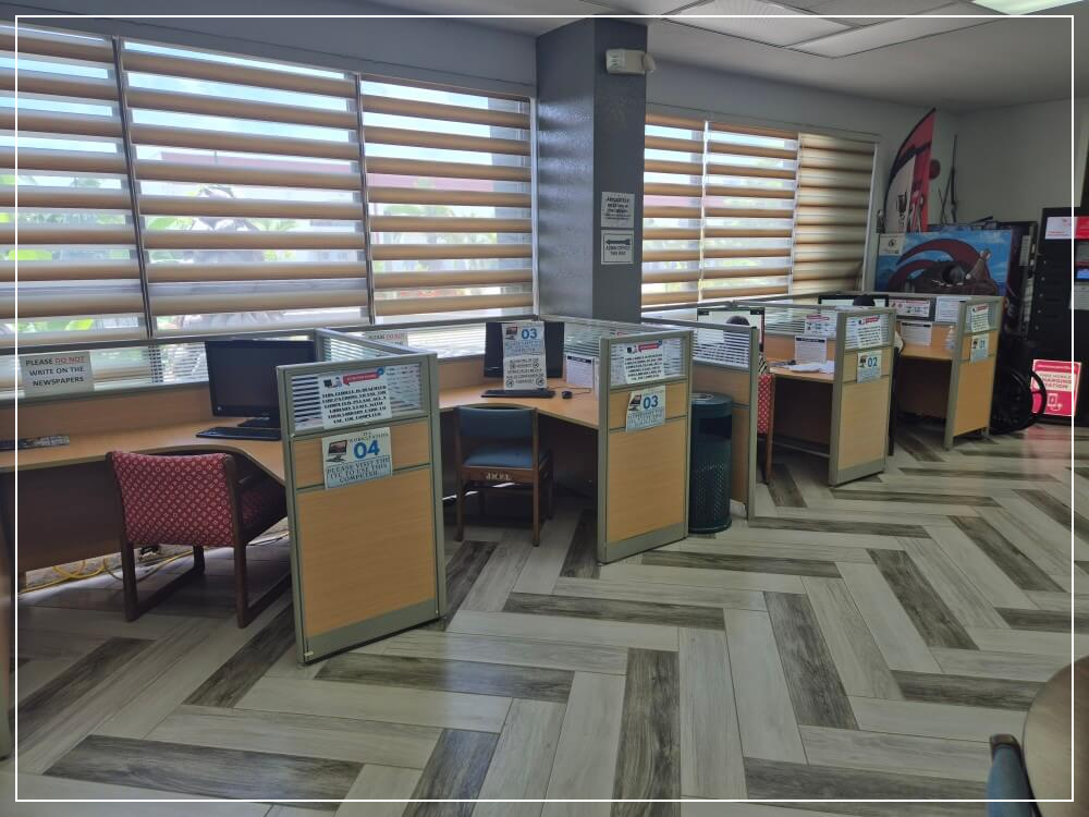 도서관에는 컴퓨터 4대가 설치되어 있다. 수량은 많지 않지만, 방문객 누구나 자유롭게 이용할 수 있다. 이메일 확인, 온라인 자료 검색, 간단한 문서 작업 등 여행 중 필요한 일을 처리하기에 충분하다.